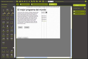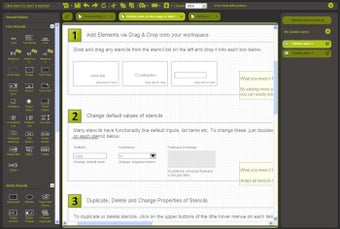 Pidoco se compone de "stencils" o módulos que puedes arrastrar al espacio de la ventana. Cada módulo es editable, no sólo en la forma sino en el contenido propio de las opciones: cajas de texto, listas desplegables, botones de selección...